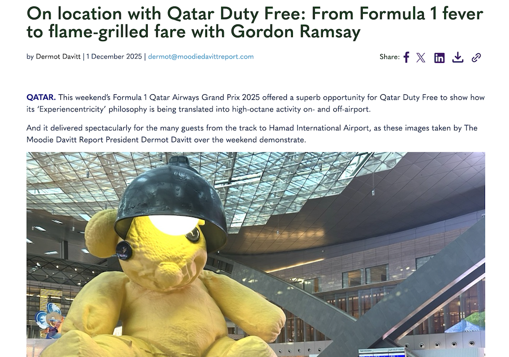 The Moodie Davitt Report President & Editorial Director Dermot Davitt was on location in Doha for the spectacular event, describing it as a “superb opportunity for Qatar Duty Free to show how its ‘Experiencentricity’ philosophy is being translated into high-octane activity on- and off-airport”.