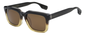 ‘Modern vintage’, Alfie in Black provides a contemporary update of a classic Clubmaster design and includes a textured nose bridge in a muted, aged gold colouration and a bespoke temple design. Bret in a Crystal Horn Cognac is a bold style which a thick 6mm acetate frame and honey coloured graduated front.