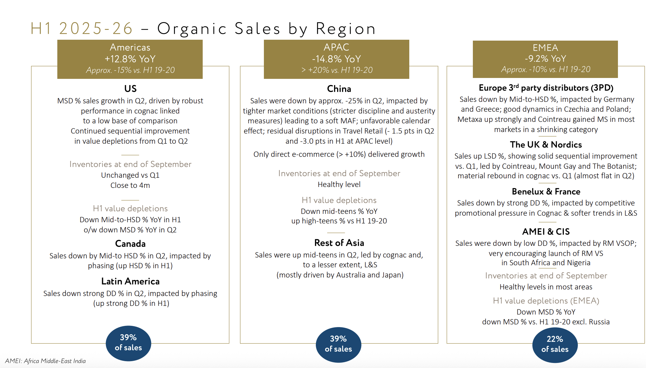 The latter relates largely to the suspension of Cognac imports to the China duty-free market since December 2024, resolved since July 2025, with shipments now resuming.