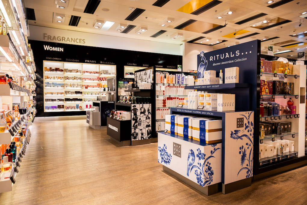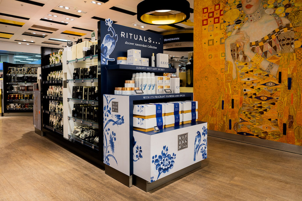 Selected locations feature the Amsterdam Collection, with design cues reflecting the city’s architectural heritage, further reinforcing Rituals’ sense of place storytelling in travel retail. The collection features prominently through head-of-gondola merchandising.