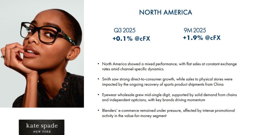 US performance showed contrasting trends. Smith delivered strong direct-to-consumer growth in the sports segment, though sales to physical stores were constrained by delayed shipments from China.