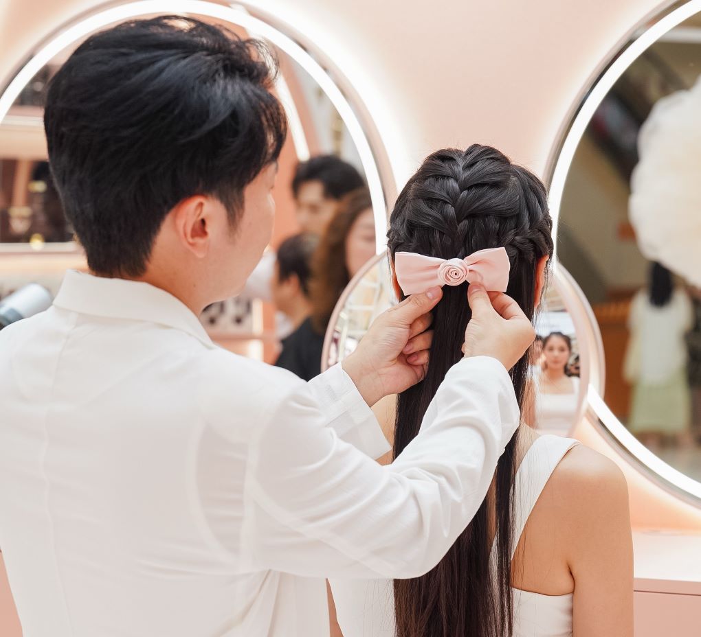 Also on site were professional hair stylists, who demonstrated the French Gloss finish and styled guests’ hair in a French rose garden-inspired aesthetic.