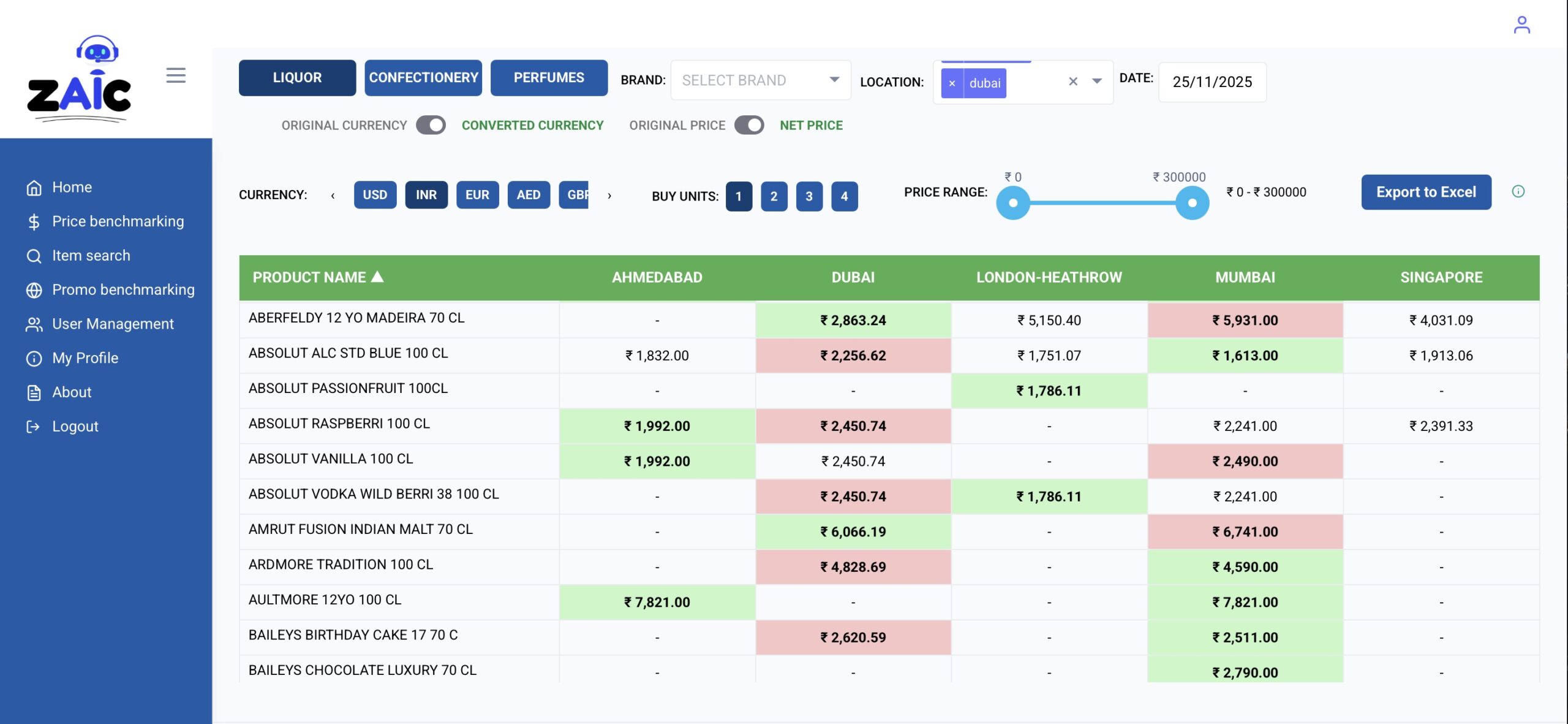All insights are delivered via intuitive dashboards with export capabilities. Brands, duty-free retailers and airports can subscribe to ZAIC to unlock pricing intelligence.