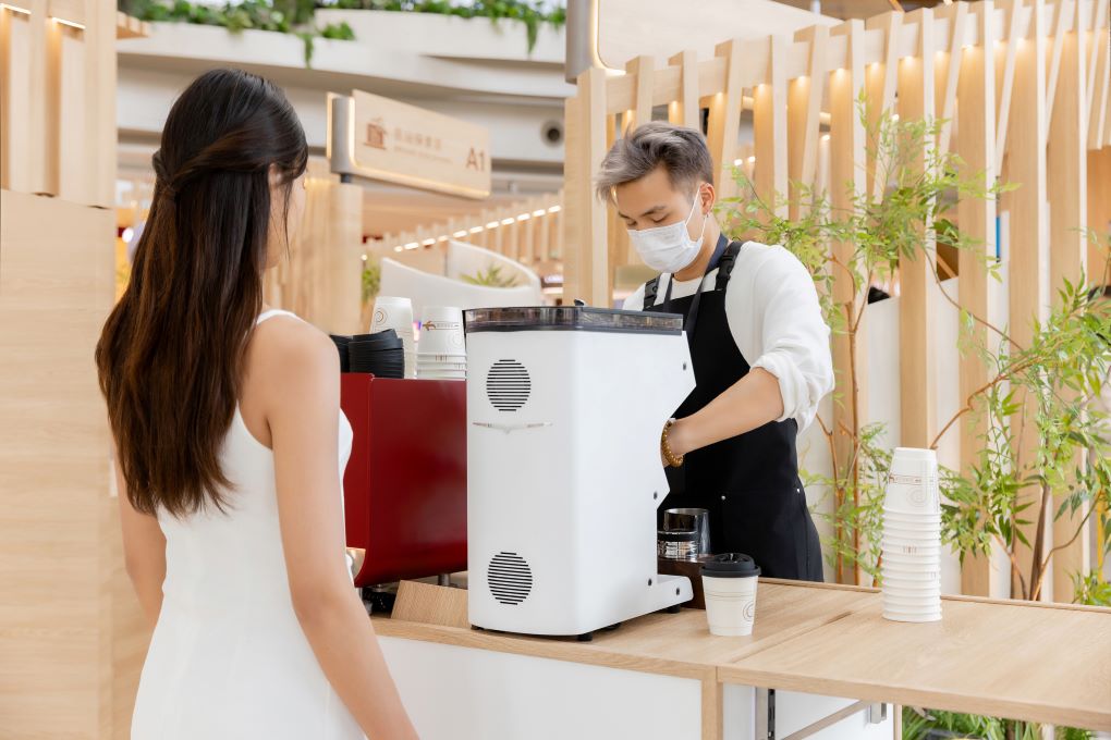 Take a break: The espresso bar extends dwell time while inviting guests to connect and engage