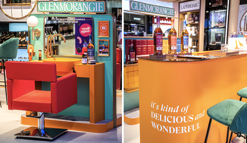 This series of playful activations is inspired by one of the shots in the Glenmorangie ‘It’s Kind of Delicious and Wonderful’ campaign film, unveiled in November 2022. Glenmorangie partnered with photographer Miles Aldridge to create a technicolor film that celebrates simple pleasures of life, “which can be transformed into joyous moments by savouring a glass of the single malt whisky,” Moët Hennessy Travel Retail Europe noted. ✈