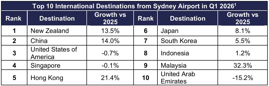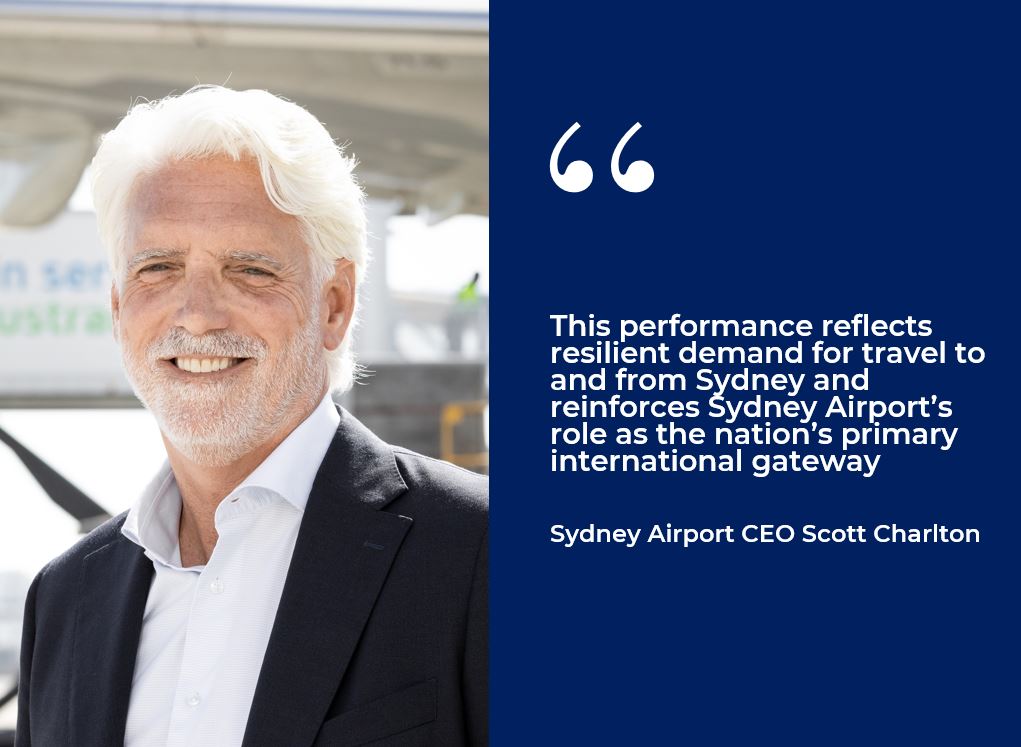 “This performance reflects resilient demand for travel to and from Sydney and reinforces Sydney Airport’s role as the nation’s primary international gateway.
