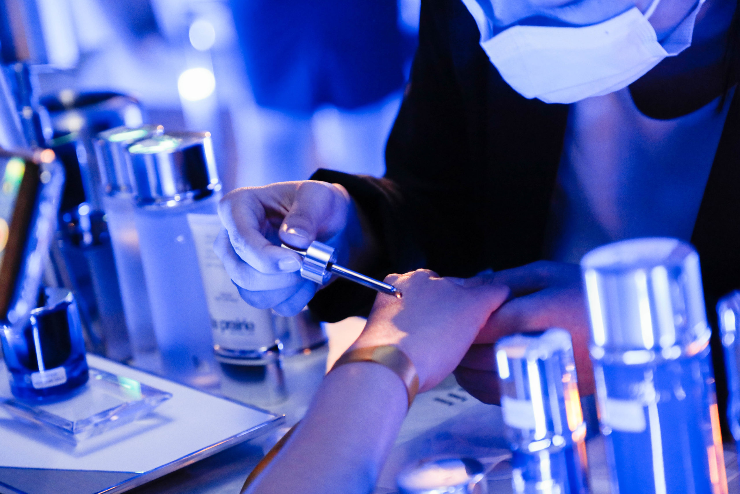 The event also featured a sensorial product experience and product discovery zone, where guests could experience the Skin Caviar Nighttime Oil first-hand while listening to music played by a live DJ, sipping cobalt blue-themed cocktails and enjoying caviar canapés, a playful homage La Prairie’s signature ingredient.