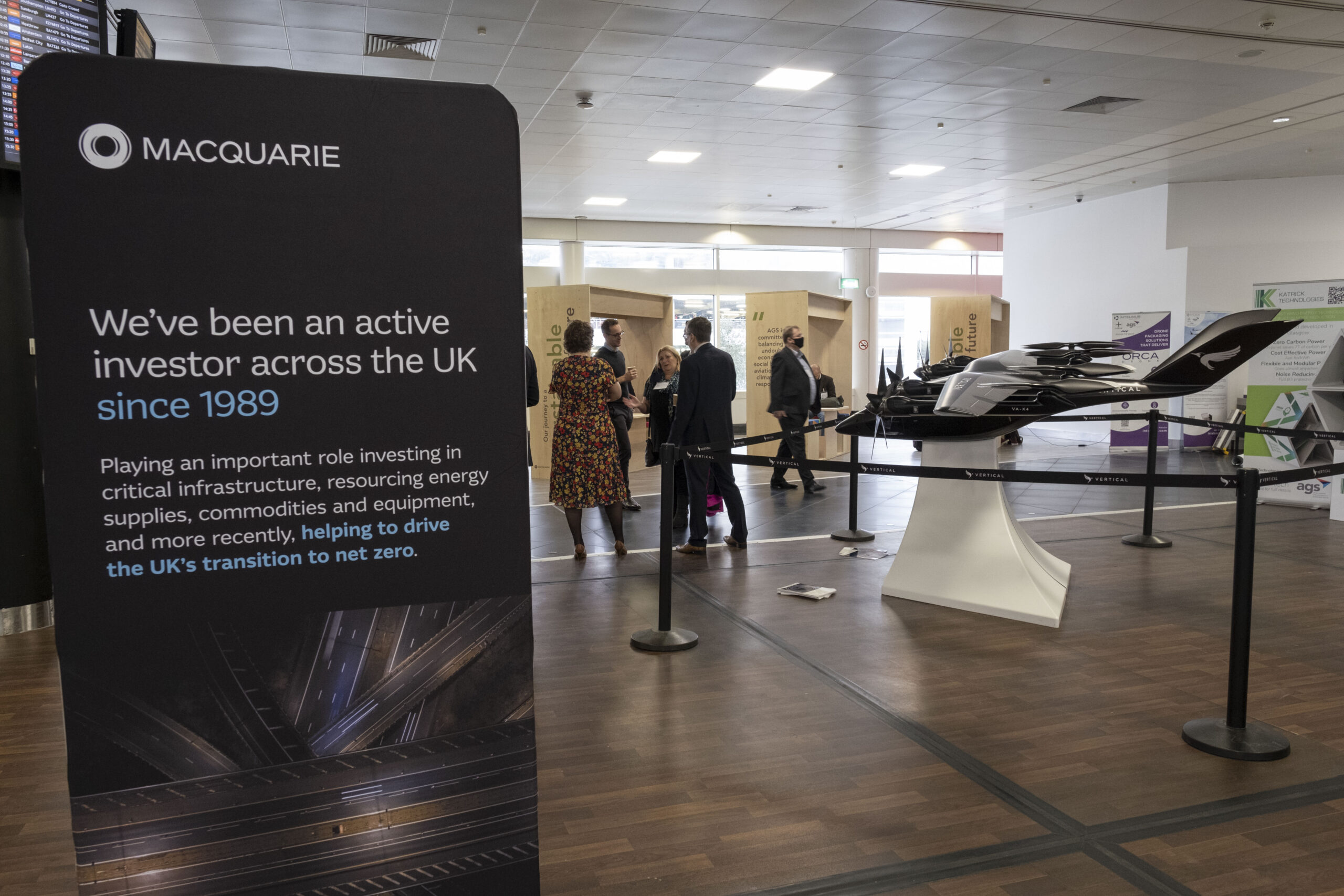 The exhibition and events space is located in the airport’s landside zone. The area includes displays from AGS Airports’ shareholders Macquarie and Ferrovial; UK trade body Sustainable Aviation; artwork from local schools; and wind technology company Katrick Technologies, which is currently working with Glasgow Airport to support its transition to net zero.