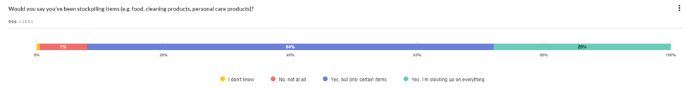 Only 7% of the respondents say they are not stockpiling items, and most are heading to the nearest stores or shopping online to buy daily necessities. Chinese consumers are among the most mobile and digitally savvy consumers in the world and the comments noted by Streetbees reveal an increasing trend towards ecommerce.