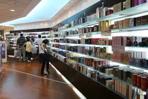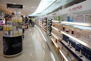 | Ezeiza’s engine room – the fragrances & cosmetics department, which accounts for around 36% of the mix; there’s a real emphasis on space, high profile promotions, and some innovative new lighting techniques | |