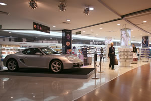 The entrance to the main Terminal A Departures store has been opened up to create a dramatic panorama – and, via the latest Porsche, some in-store theatre – while the check-out area is both well-staffed and hi-tech | |