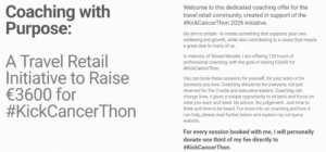 The initiative, through Diana’s YouMe Coaching business, offers 120 hours of one-to-one coaching, with one-third of her fees donated directly to the travel retail cancer research fundraising and visibility campaign.