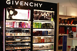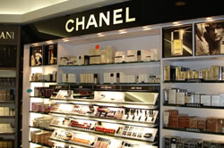 Fragrances and cosmetics command sizeable space in store. As with liquor there’s a strong personalisation emphasis with names such as YSL, Lauder, Clarins, Chanel, Givenchy and Guerlain drawing potential shoppers into the store from their attractive, spotlessly-clean and well-lit wall units.