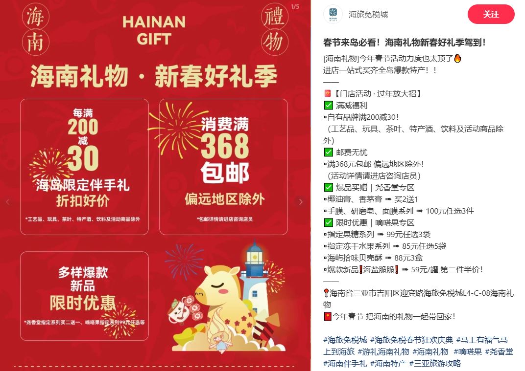 Hainan Tourism Investment Duty Free Co (HTDF) continues its Lunar New Year celebrations, promoted in social media featuring a festive horse motif, inviting shoppers to take part in seasonal offers.