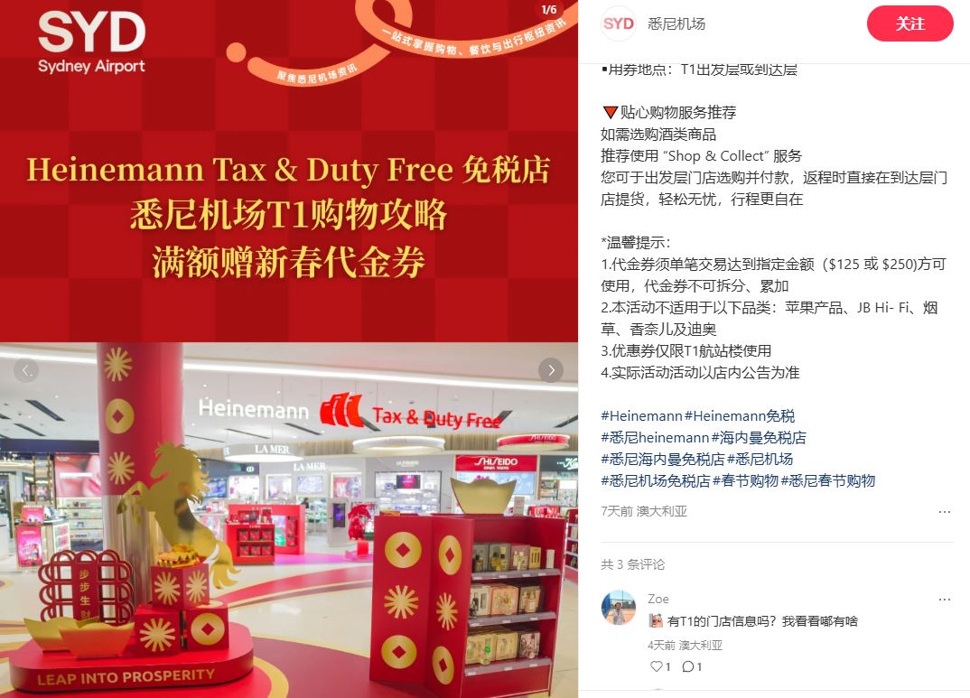 Heinemann is promoting its Year of the Horse activation at the Heinemann Tax & Duty Free store in the T1 International Terminal at Sydney Airport, where a golden horse display anchors the festive installation.