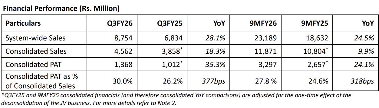 “With the commencement of operations at Delhi Airport Terminal 2 and Navi Mumbai International Airport, we now operate a strong network of over 530 units and have built a portfolio of 140 brands as of December 2025.