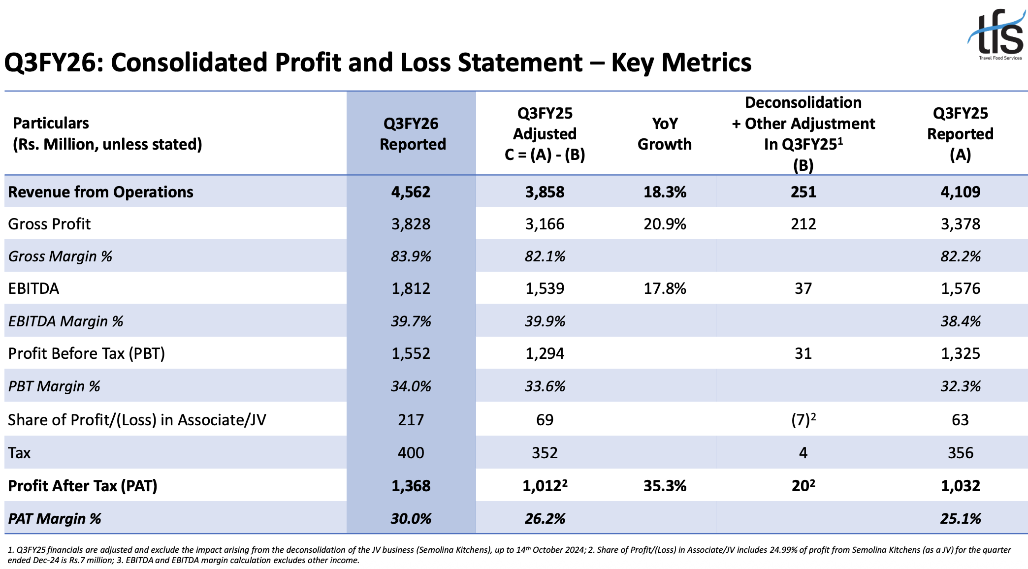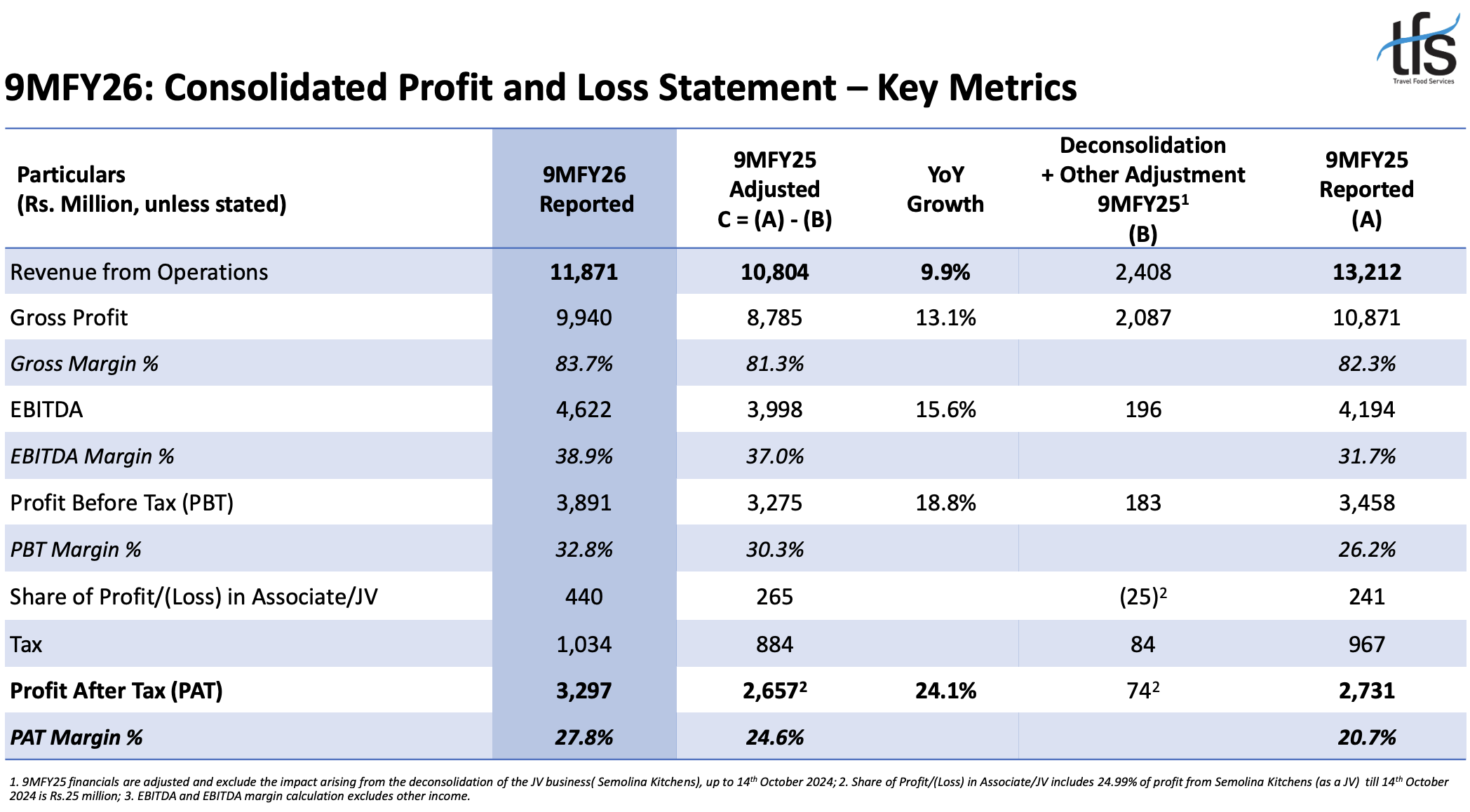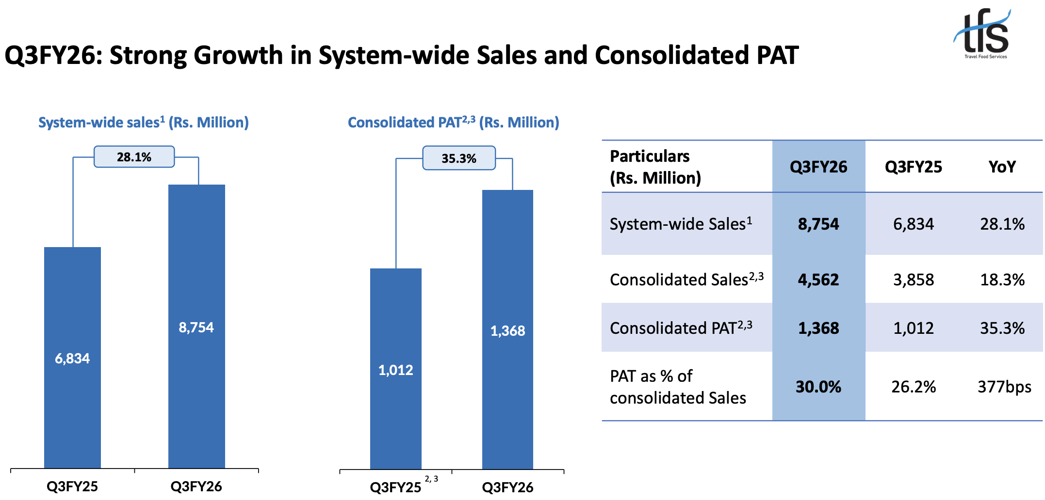 INDIA. Leading travel dining and hospitality company Travel Food Services (TFS) has reported sharp growth in Q3 and nine-month revenues and profits.