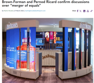 Click on the image to read our recent coverage of the blockbuster announcement that Pernod Ricard is in talks with its US peer Brown-Forman Corporation regarding a potential “merger of equals”