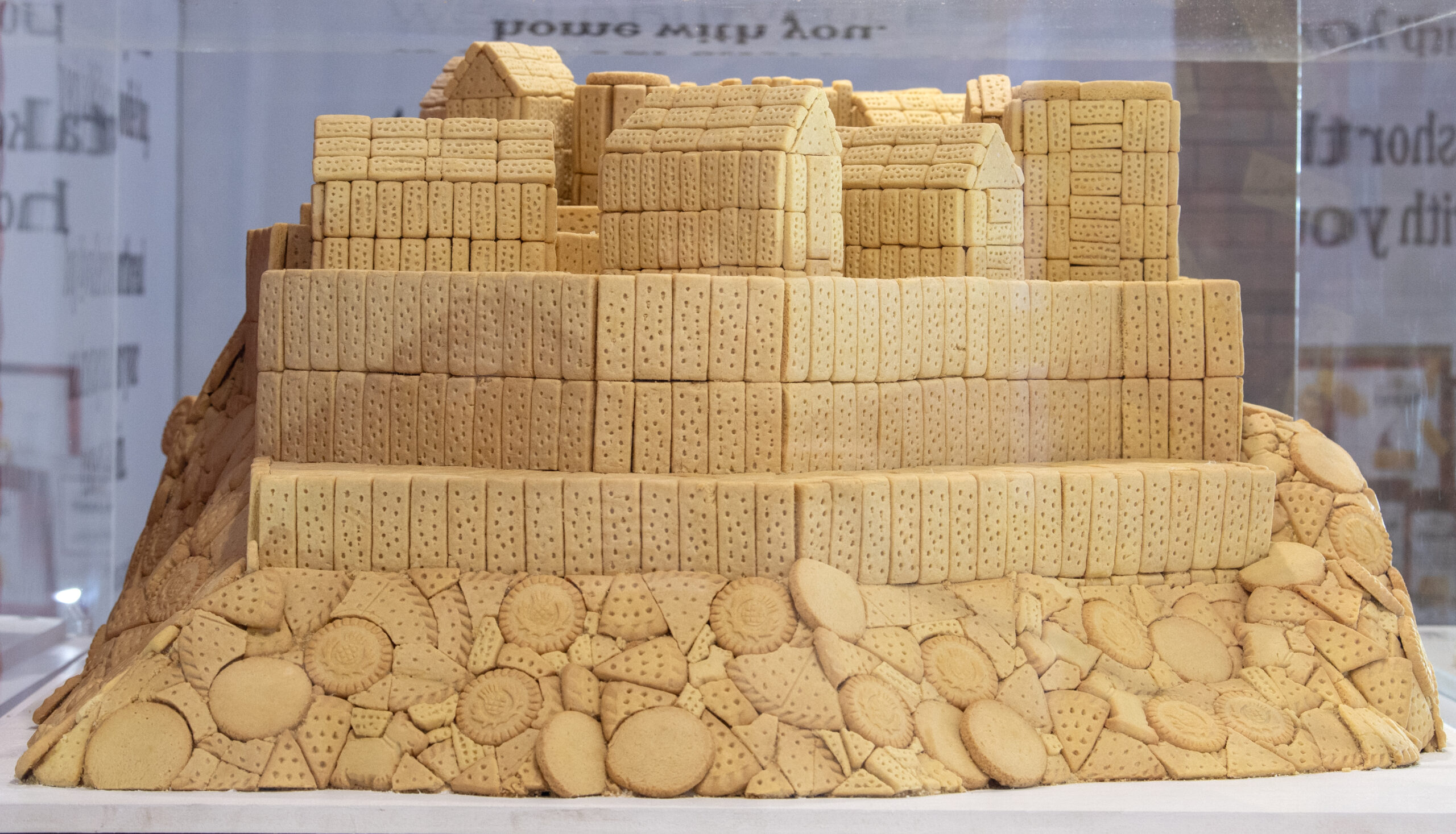 Its centrepiece is a mock Edinburgh Castle, made of 2,933 shortbread pieces by UK food artist, Prudence Staite. Located past airport security, it is expected to be seen by over a million travellers at a time when visitor numbers are high for the Edinburgh Fringe Festival.