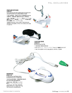 The PAL Exclusives category features Philippine Airlines toys and souvenirs such as aircraft models, aircraft-shaped thumbdrive, mouse and clock as well as an airline-branded watch and aircraft construction toy set.