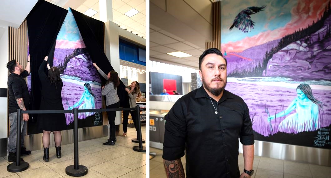 The store prominently displays a mural by Indigenous artist Keegan Starlight of the Tsuut’ina Nation. The artwork depicts the significance of the land shared with Indigenous peoples and the commitment to preserving and sharing their culture.