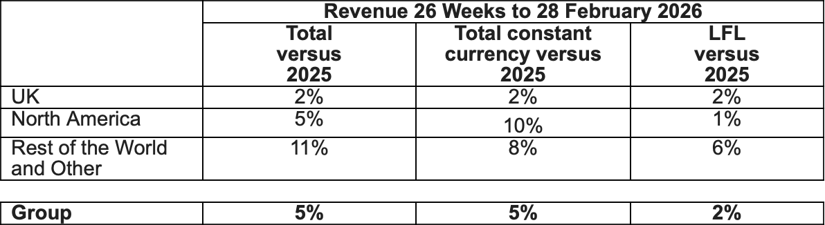 In the Air channel, revenue increased +1%, with like-for-like revenue up +2%. Growth was hit by temporary store closures across Heathrow Airport terminals amid investment in stores. WHSmith’s refurbished flagship stores are expected to open in April.
