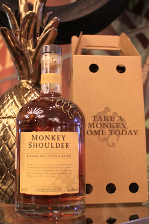 Consumers who purchased a one-litre bottle of Monkey Shoulder during the promotion period received a mini monkey toy and a 50ml miniature Monkey Shoulder bottle, all packed in a brown carry box with breathing holes to imitate taking a pet monkey home.