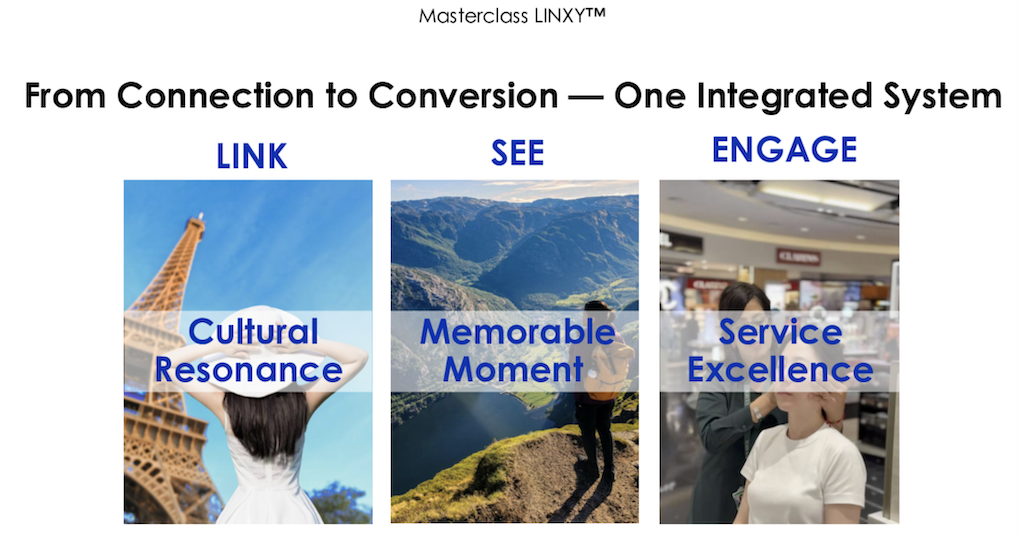 “Our philosophy is embodied by Link, See, Engage. Link means authentically connecting with Chinese customers; See means understanding their evolving needs; Engage means responding with culturally precise experiences.”
