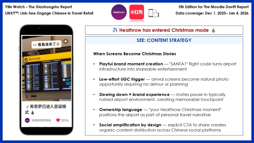 In this fifth edition of Yilin Watch – The Xiaohongshu Report, we spotlight three players across two continents — London Heathrow Airport x World Duty Free, Frankfurt Airport × Heinemann Duty Free, and Shinsegae Duty Free — to decode how each party leveraged Xiaohongshu during the Western festive window, and what their strategies reveal about engaging Chinese travellers when the noise is at its loudest.