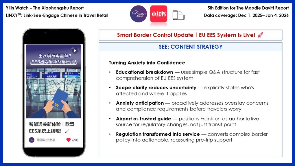 During festive periods, Chinese FIT travellers don’t disengage from rational planning – they accelerate it. Frankfurt’s EES explainer and Pamela Reif post outperformed Christmas content.