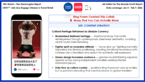 Among all content, a Muay Thai x local fashion collaboration broke through the festive noise. By combining sense of place with local exclusivity, the post reframed Thai cultural heritage as contemporary lifestyle currency – appealing strongly to younger Chinese travellers seeking distinctive purchases abroad.