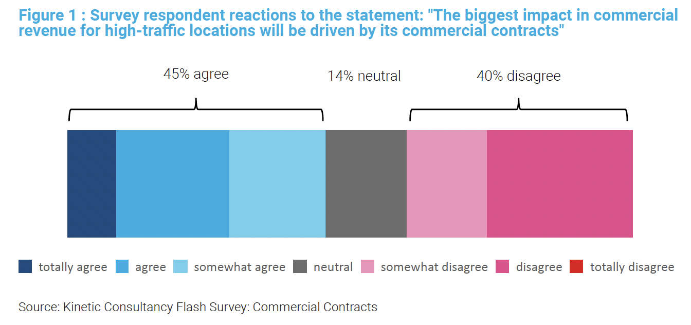 Survey respondents were asked about the role of commercial contracts and their impact on commercial revenue for high-traffic locations. Some 45% agreed that contracts would be the major shaper of revenues, 40% disagreed and 14% gave a neutral response (see chart above).