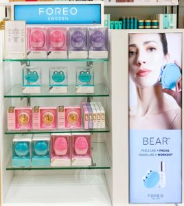 The counter features the brand’s bestselling skincare gadgets and products including the Luna 3, Luna Mini 3, the UFO and its accompanying masks, along with the Bear line. The products are highlighted as providing a complete skincare routine which can be carried out anytime, anywhere.