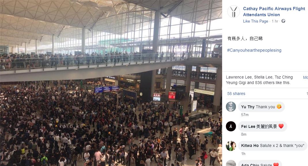 HONG KONG. Airport staff and flight attendants have joined demonstrators in staging a sit-in protest at Hong Kong International Airport.