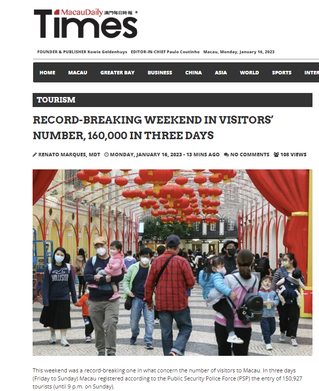 MACAU, CHINA. Travel retailers in Macau are looking forward to a sharp increase in visitor numbers over the Lunar New Year holiday period as air and sea trip services are geared up following the scrapping of quarantine requirements on 8 January.