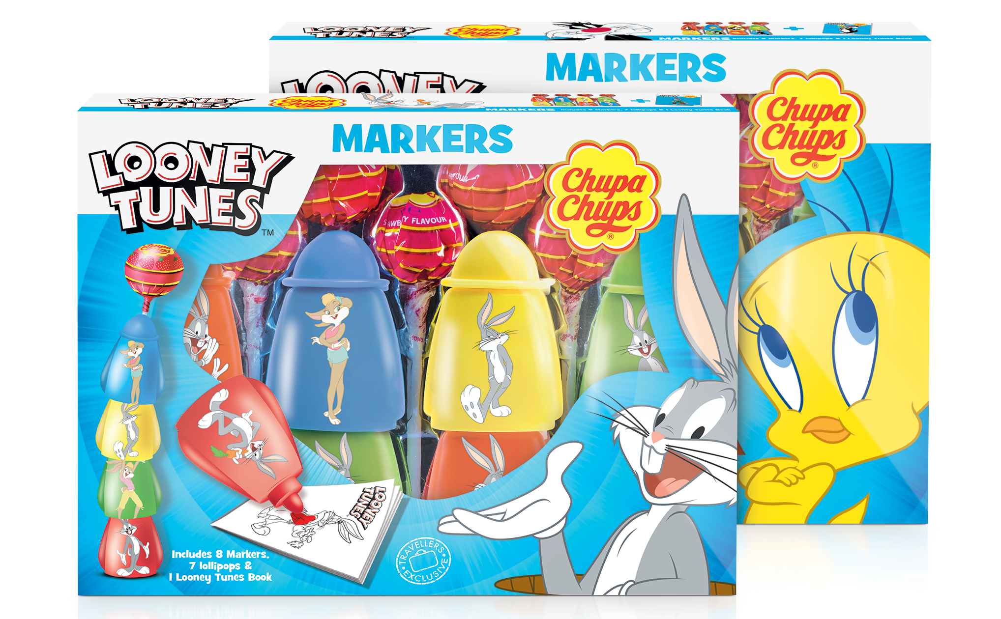 Chupa Chups has partnered with Looney Tunes for a new kid’s markers and colouring set. Each set contains eight markers, seven lollipops and a colouring book, with the choice of Bugs Bunny or Tweety packs.