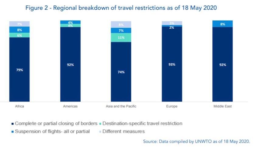 All UNWTO regions have more than 65% of their destinations completely closed to tourism: Africa (74%), Americas (86%), Asia and the Pacific (67%), Europe (74%) and the Middle East (69%).
