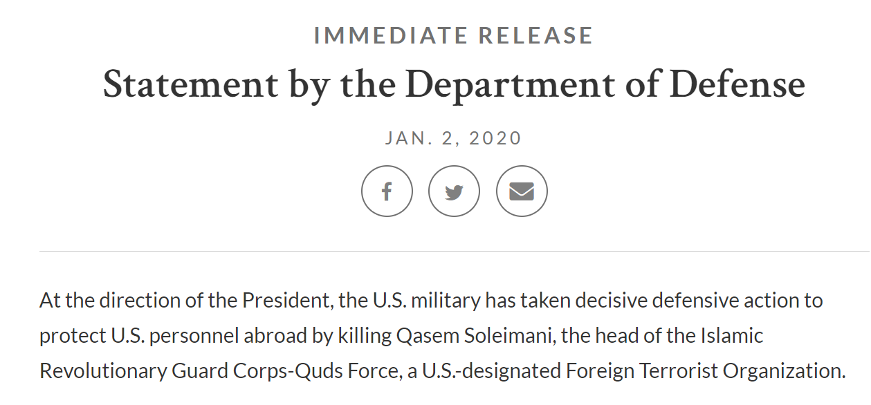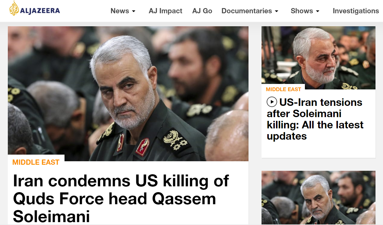 Media reaction to the US airstrikes Whether you endorse or condemn his actions, Soleimani was among the most influential figures in the Middle East of the past decade. His death – and the consequences of this stark US attack – will weigh heavily on the next 10 years in the region. – CNN Soleimani and al-Muhandis’s deaths are a potential turning point in the Middle East and are expected to draw severe retaliation from Iran and the forces it backs in the region against Israel and US interests. – Al Jazeera His death marks a decisive turning point in what is already a major crisis between Iran and the US and its allies. Escalation is expected and retaliation seems certain, setting an already volatile region on an even more dangerous course. – BBC |