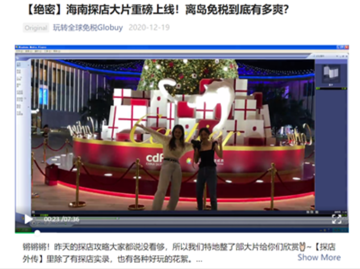 CHINA. WeChat social media platform Globuy takes a breezy look at the multiple shopping and other tourist attractions offered by China Duty Free Group in Sanya and Haikou, Hainan in a breezy seven-minute video shot last month.