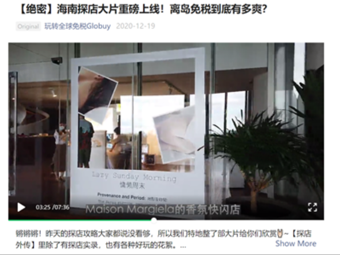 In it, the young, trendy, all-female Globuy team fly from Shanghai to visit CDF Mall in Sanya, and the retailer’s downtown and airport stores in Haikou to the north. They also get to visit the Sanya EDITION where they take in a unique cross-channel promotion by Maison Margiela fragrance (L’Oréal), sample some Hainanese cuisine and drinks, and take in one of the island’s beautiful beaches.